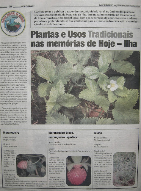 Continuamos a publicar o saber duma comunidade rural, no âmbito das plantas e seus usos tradicionais, da freguesia da Ilha. Este trabalho consistiu no levantamento da flora aromática e medicinal local, com a recuperação do conhecimento e saberes populares, pretendendo-se que contribuía para estimular a diversificação e valorização das atividades rurais.